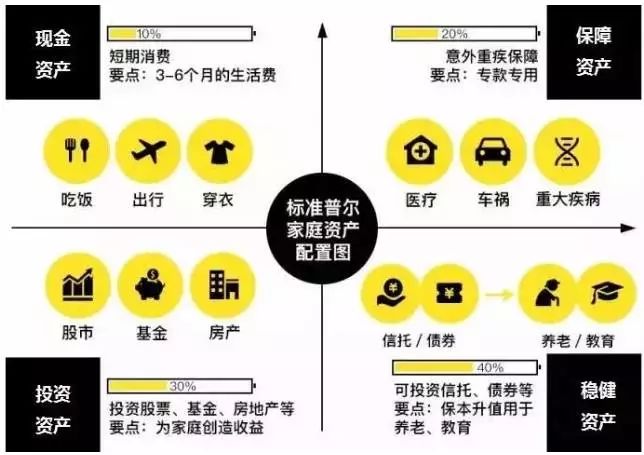 这个图是标准普尔(全球最具影响力的信用评级机构)调研全球十万个资产稳健增长的家庭,分析总结出他们的家庭理财方式,是世界上公认的最科学、稳健的资产分配方式!