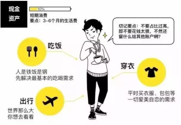 这个账户每个人都有,保障的是家庭的短期开销,每个月基本是固定的,买衣服、旅游、换手机等需求,也应该从这个账户支出。