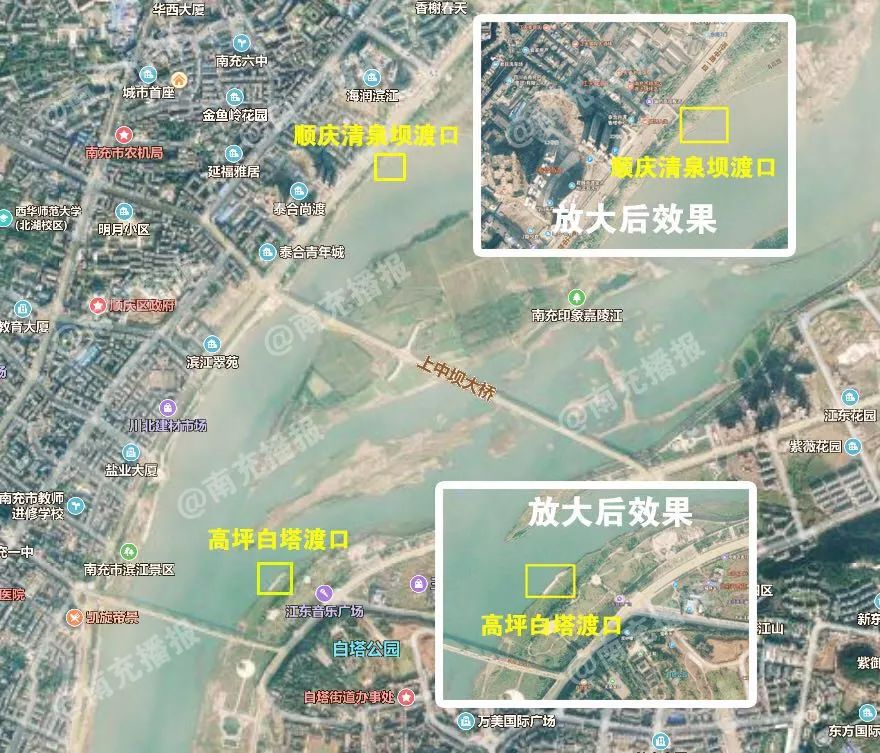 (一)渡口设置。顺庆区至湿地公园往返渡运线路设置2个渡口,分别为顺庆清泉坝渡口、湿地公园观澜渡口;高坪区至湿地公园往返渡运线路设置2个渡口,分别为高坪白塔渡口、湿地公园内河渡口。