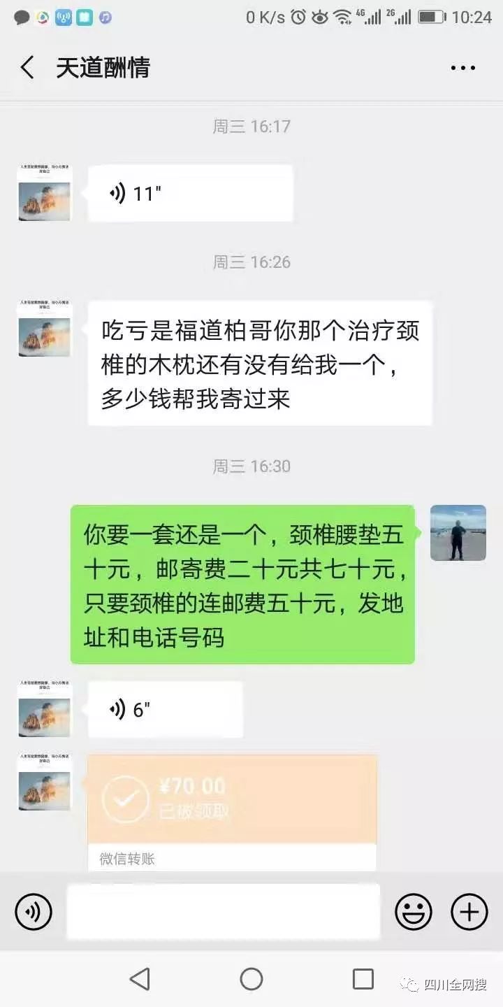 “木枕头,不服软,硬对硬,对骨刺,是克星。村长何怀全家属用了,村民康平周家属用了,都说效果好。”老邓说,“如果你不信呀,可以打他们的电话问一问,或者看下徐家邓家祠村干群心连心交流群里的人咋个说。”