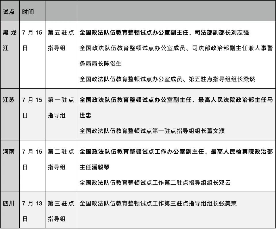 政知君注意到,自7月8日召开全国政法队伍教育整顿试点工作动员会后,相关试点地方陆续迎来指导组。