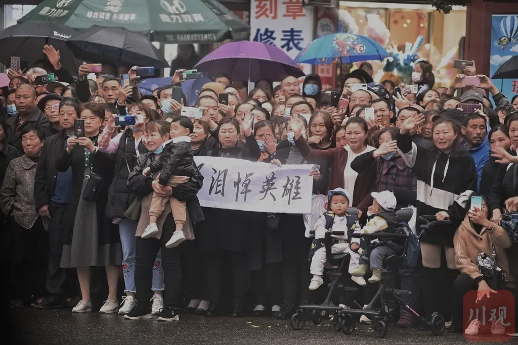 10月15日上午,苍溪因公牺牲民警李雨阗遗体送别仪式在苍溪县城举行,数万群众夹道相送李雨阗。