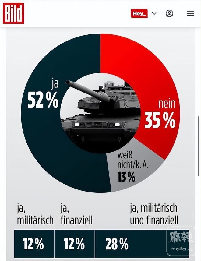52%的德国民众认为西方国家应当加大对乌克兰的支持力度,迫使普京停止对乌克兰的军事行动。