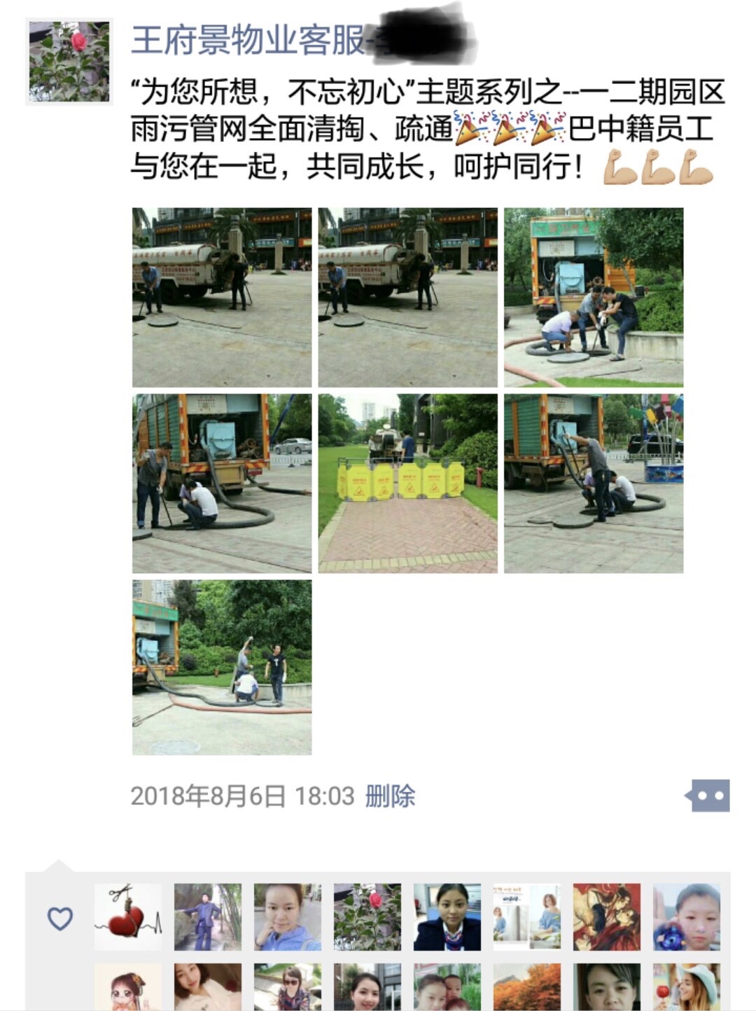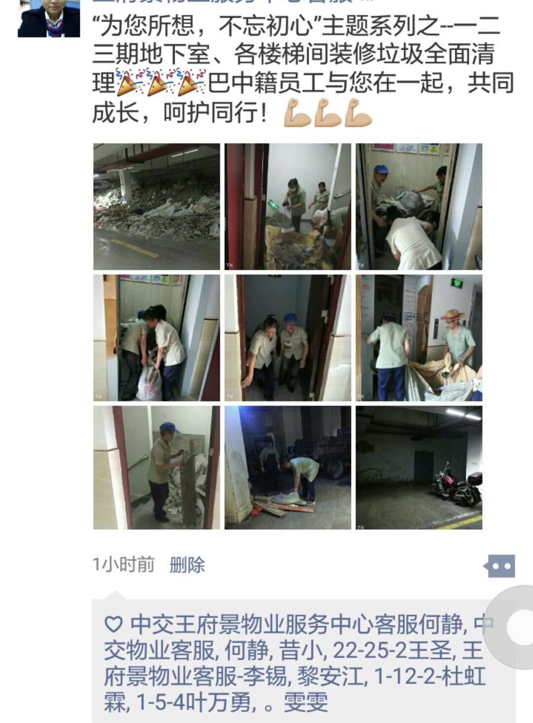 项目经理失踪以后,管理人员开会一致认为:物业服务工作不可再拖!长期下去,必定会对中交品牌造成极大的负责影响!几年来辛辛苦苦创造的省优品牌将不复存在!我们都是巴山儿女,我们要对广大业主有个交待!于是,我们广大巴中籍员工对服务质量的下降表示诚恳的道歉!并根据2018年年初制定的工作计划,针对业主目前重点关注的问题及迫切需要为业主解决的问题,形成整改及提升计划(有图为证),其目的是为了全面提升小区的整体品质,还广大业主一个温馨、舒适的宜居家园,恢复中交品牌形象。