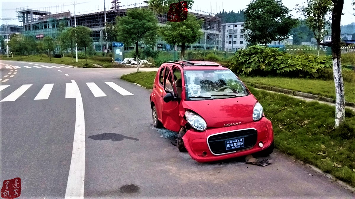[原创·图文] ——河舒工业园区桂花南路一小车出交通事故后遗弃在公路边上—— |