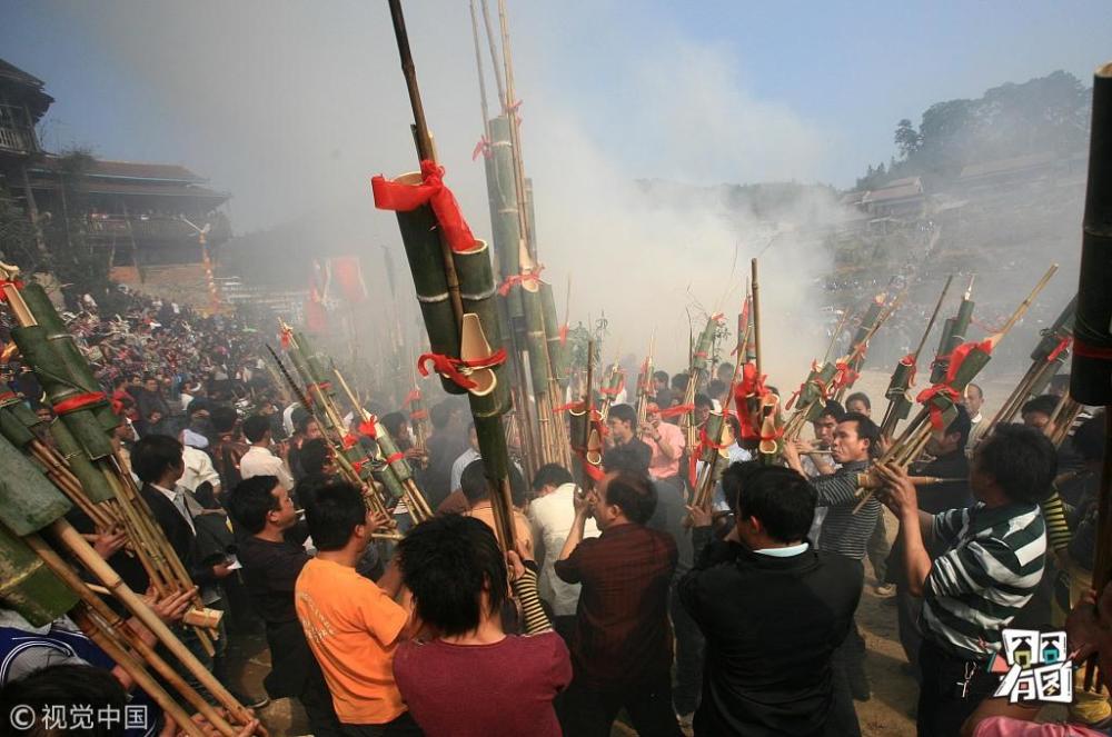 龙林智/视觉中国【芦笙比赛】2011年2月5日,在广西融水苗族自治县大年乡,众多芦笙在比赛前合奏。当日,是大年初三,广西融水县大年乡举行芦笙比赛,10多个侗族和苗族村寨的芦笙队前来参赛,吸引了当地和邻近贵州省从江县众多村民和游人。