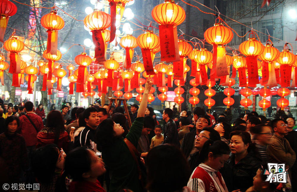 张海岩/视觉中国【元宵节猜灯谜】2010年2月28日晚,江西九江市民在灯谜会现场猜灯谜。