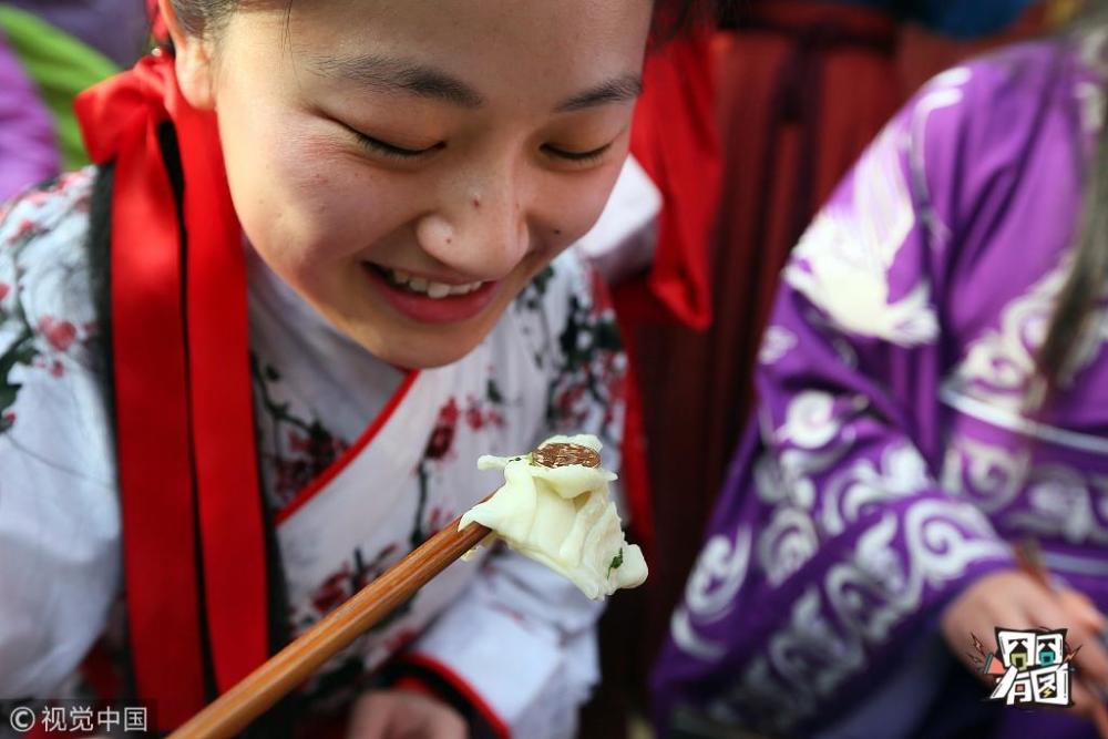 徐培钦/视觉中国【饺子/汤圆藏硬币】2015年2月23日,江苏省南通市,参与活动体验的市民吃到包着硬币的饺子。很多地方过年有在饺子或汤圆中放硬币的习俗,为的是讨个吉利。大年初一早上吃饺子,谁吃到包着硬币的饺子,就预示着他这一年会有好运。