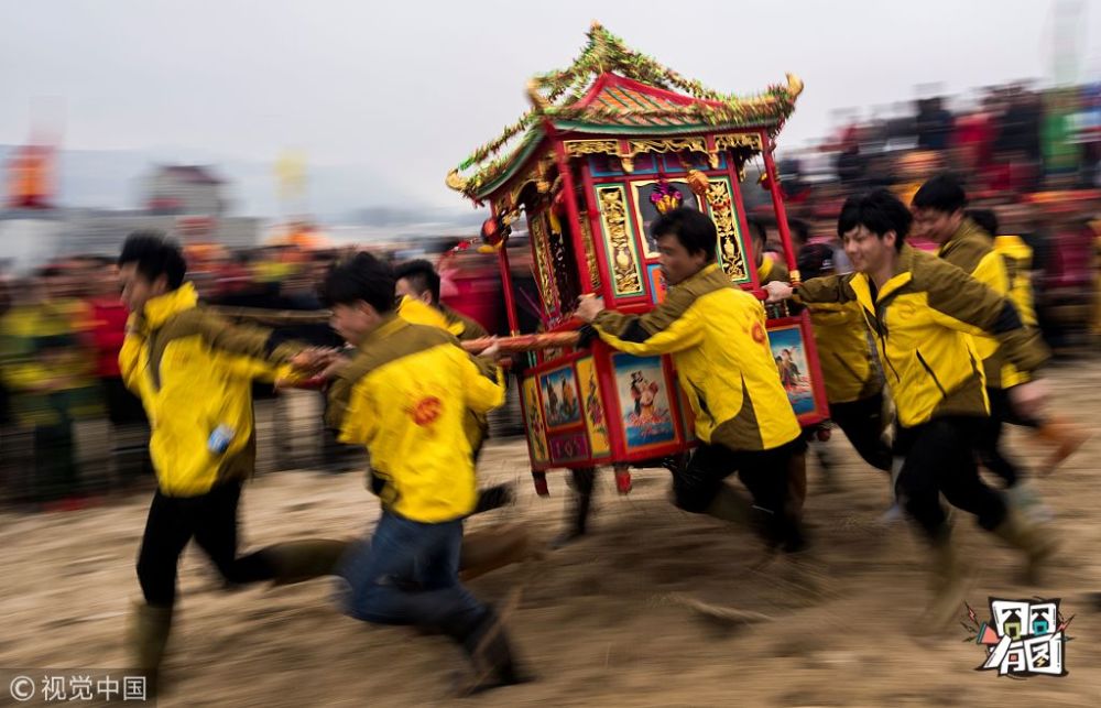 JOHANNES EISELE /视觉中国【冲海闹元宵】过完十五还是节。2018年3月5日,福建南日岛浮叶村,当地举行正月十八冲海闹元宵活动,身强力壮的年轻男子抬着供奉神灵的轿子冲向大海,在大海里颠波搏浪。据说,水花溅得越高,这一年村里的渔民出海捕鱼就会越多,生活越红火,全家更平安。