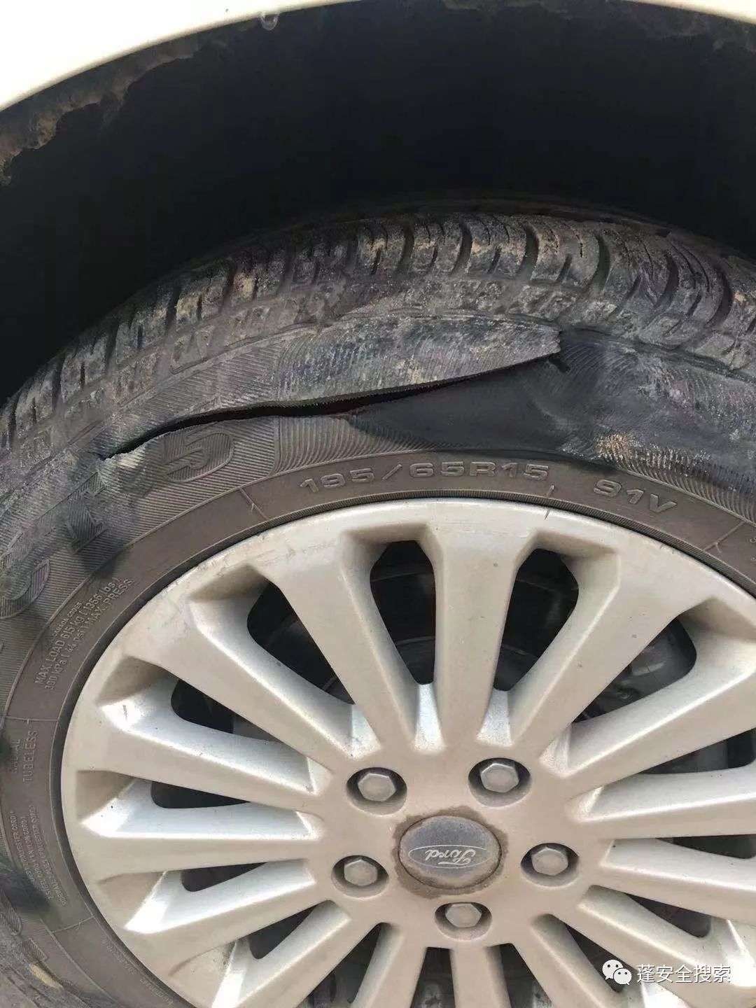 被该男子故意用刀划烂的蓬安一女士的小车轮胎如下: