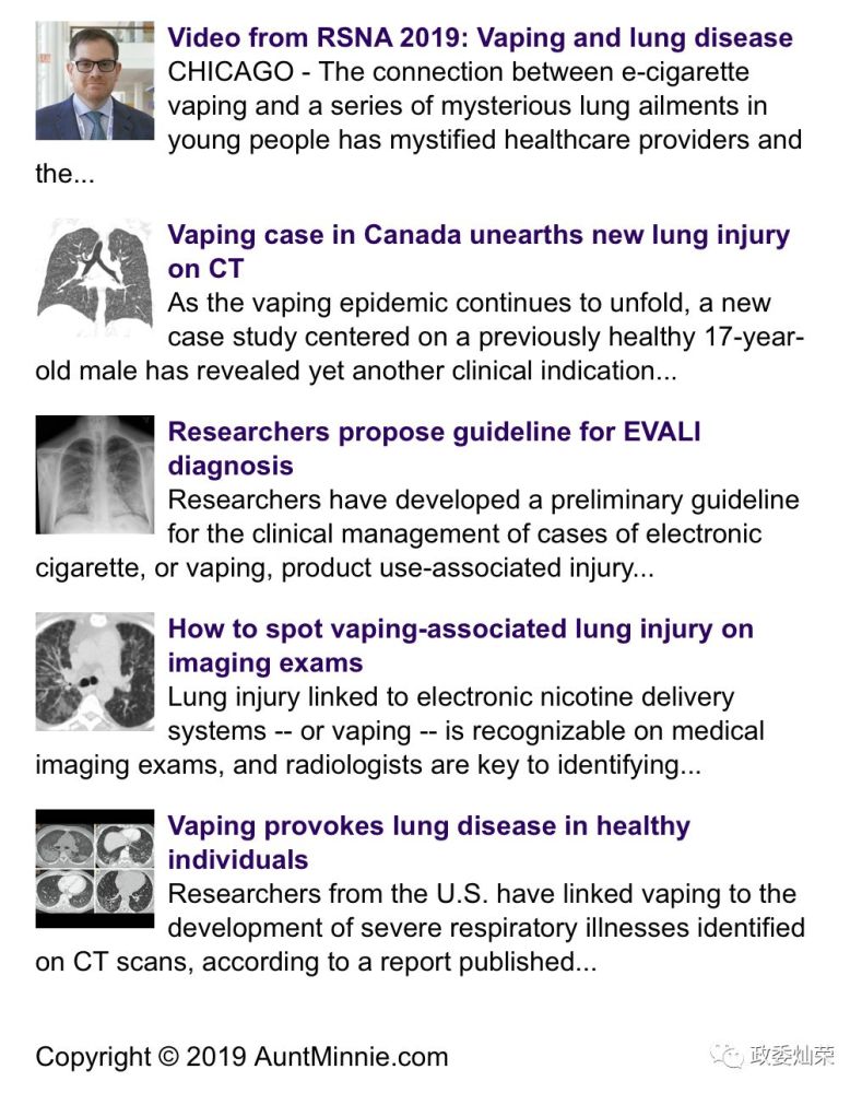 (笔者注:此时全美媒体几乎都不再使用“神秘肺炎”一词,转而使用“与电子烟有关的肺炎”或“电子烟导致的肺炎”;该链接现已无法访问)