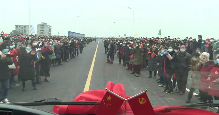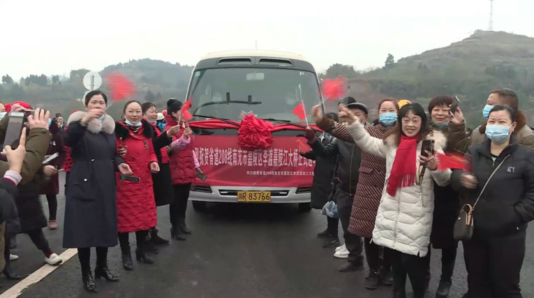 一辆披着红绸的满载着李渡镇人大代表和村居干部的“考斯特”,