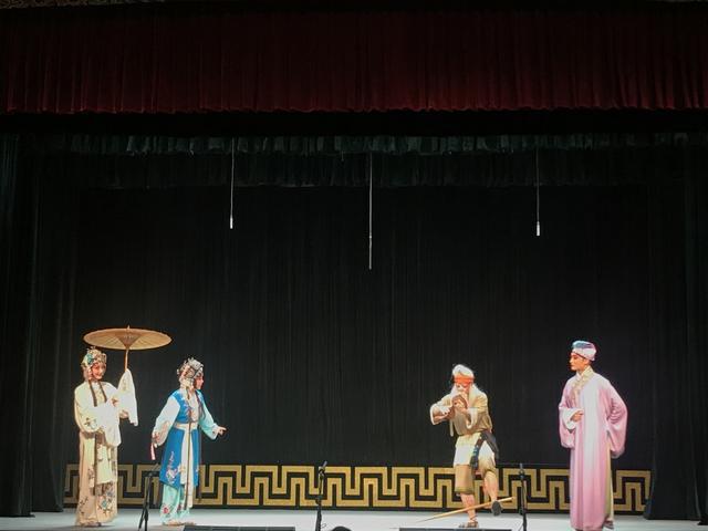 此次在金汤街剧场演绎的虽然只有《白蛇传》中的两出戏,但每一出都算得上精华——《船舟借伞》轻松有趣,讲述了许仙清明扫墓归来西湖遇雨,乘舟返家,途中遇白素贞、小青同来搭船,小青穿针引线,艄翁极力撮合,白、许互明身世,同生爱慕,许仙将雨伞借与白素贞,艄翁将草帽借与小青,相约往访的故事。剧中,小青以奴旦应工,重眉眼身法;艄翁以丑角应工,诙谐风趣。许仙与白素贞船舟相见时,彼此不便交言,互视湖中身影,以水作镜,默视传情;小青投石击水,二人方始惊醒,依依不舍而别。这出戏的艺术表现一向为人称道。