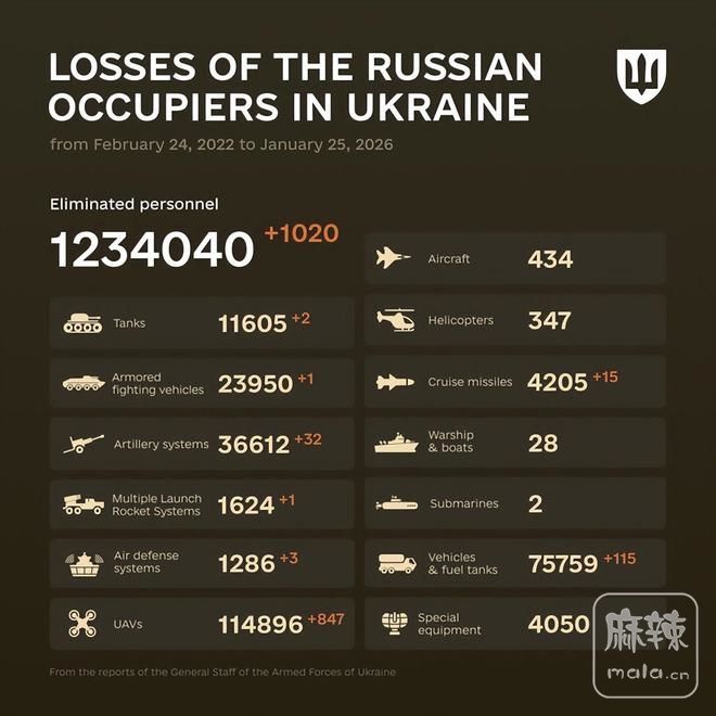 2026年1月25日,俄乌战争进入第1432天。