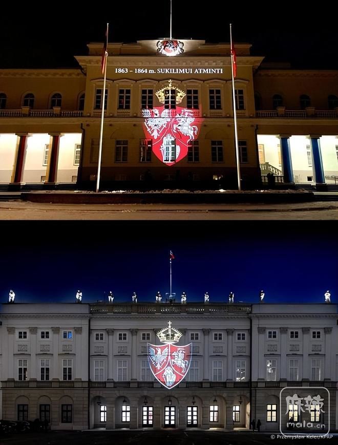昨天,也就是1月25日,立陶宛和波兰总统府共同打上”波兰起义军“灯光投影,纪念在1863年一月开始的起义,当时被俄罗斯帝国并吞的波兰-立陶宛联邦,发起了反抗运动,虽然最终以失败收场,但其精神继续永传。
