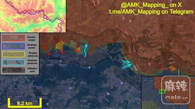 战场方面,北部前线,在霍通、尤纳基夫卡和米罗皮利亚方向,俄罗斯和乌克兰军队在过去几周内均有所推进。