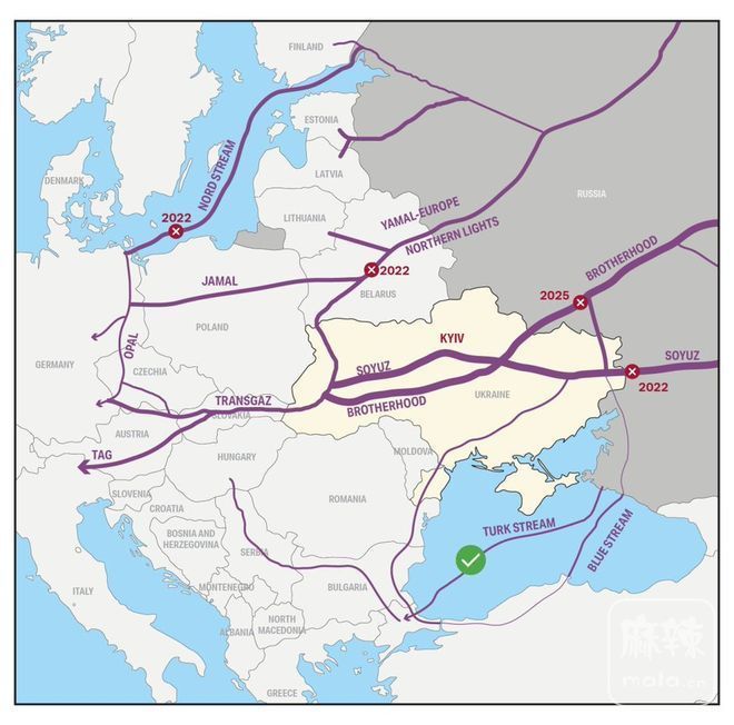 目前俄罗斯所有主要出口管道目前均处于停运状态——其中大部分管道的输送目的地都是欧洲——仅能从其东部和北部终端及管道系统(数量较少且发展程度较低)出口石油和天然气,这意味着其收入将大幅减少。
