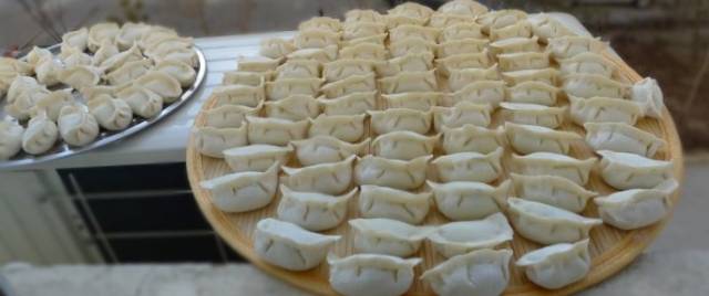 储备饺子也是过年前准备的年货之一,包好的饺子冻上,可以包好几个馅的,酸菜,芹菜,过年前来小孩了晚上饿了,煮点!