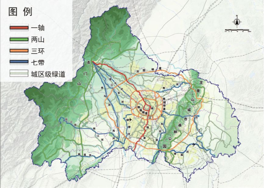 今天的人们不可辜负这座城市的千年之美,新总规必须精心呵护它的颜值。在此意义上,新总规特别重视“公园城市”特点,提出加快实施全域“一轴两山三环七带”区域级绿道,规划区域级绿道1920公里、城区级绿道5380公里、社区级绿道9630公里,总计16930公里,是目前全国规划最长的绿道系统。