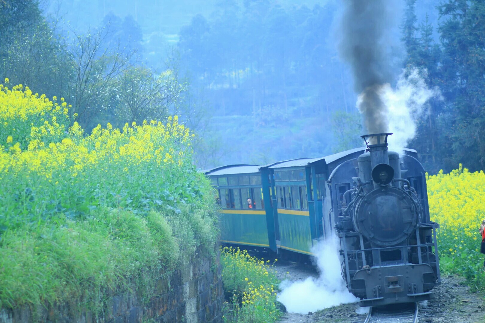 正是嘉阳小火车穿越花季的最佳观赏期,一票难求呐。