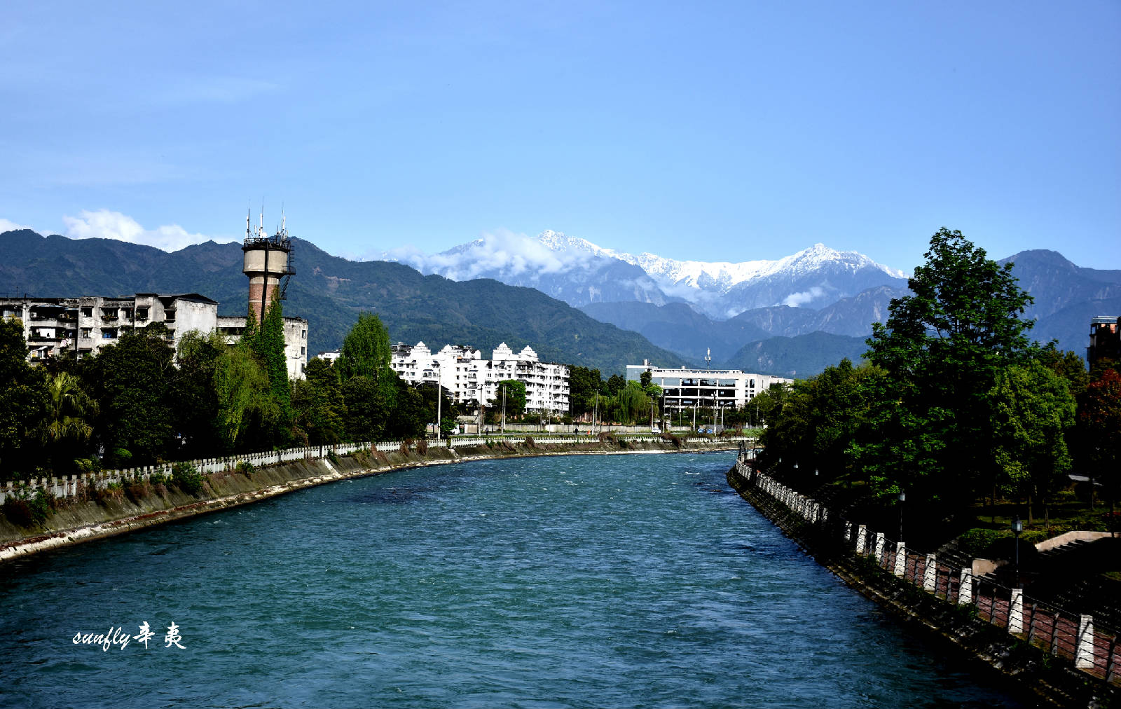 [摄影.旅游] 【人 间 四 月 天】雪山.蓝天下的都江堰走马河畔【已上麻辣社区首页】