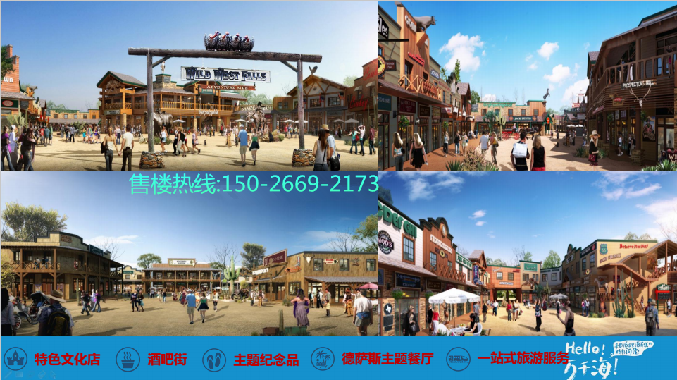 3、三座旅游小镇:德萨斯牛仔小镇 、法国风情小镇、海洋温泉小镇?