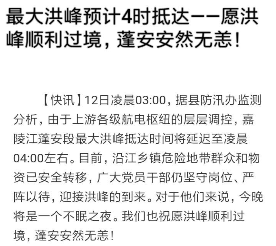 防汛抢险进行时——嘉陵江蓬安段水情报告(6)