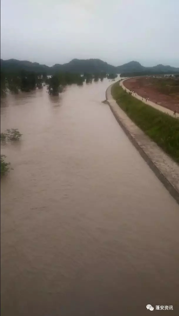 2018-07-12 09:30:41 根据县防汛办最新消息,嘉陵江洪峰于今天早上8点25分抵达蓬安,最大流量19300立方米每秒。截止9点29分,嘉陵江蓬安段水位正逐渐下降,流量降至18500立方米每秒。