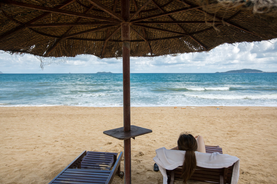 在绵长的沙滩上为住店客人有免费提供太阳伞和躺椅。