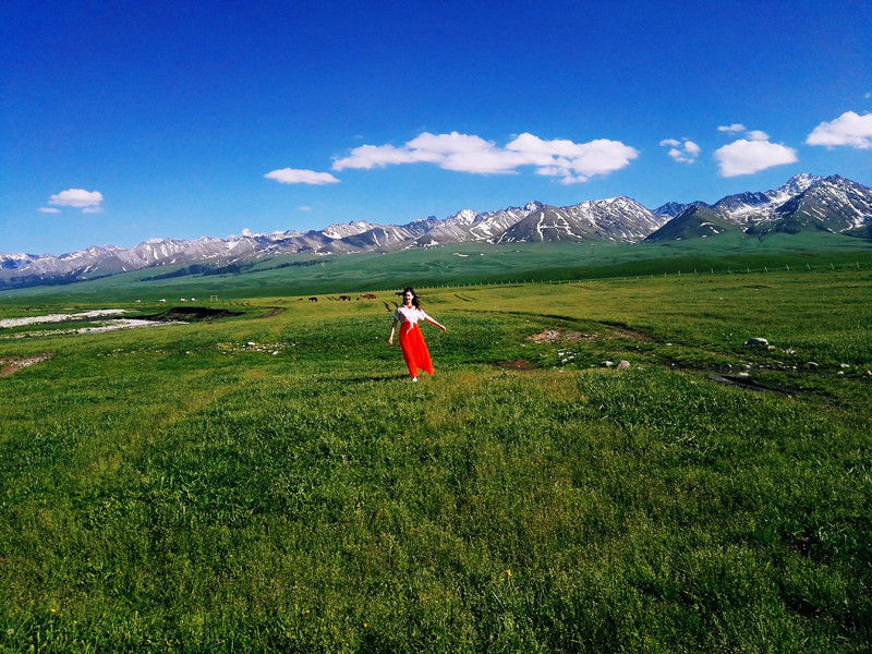 那拉提空中草原,蓝天,白云,雪山,树林,草原,花海…
