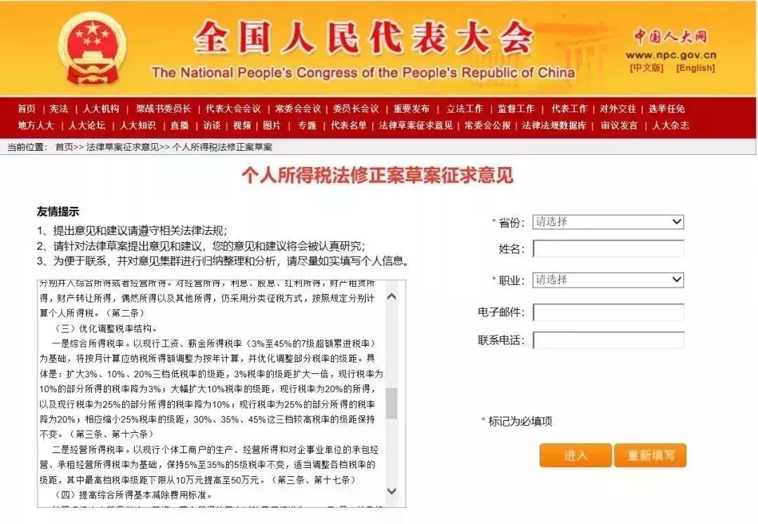 个人所得税法修正案(草案)6月29日