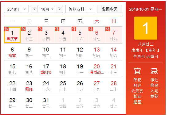10月—国庆长假
