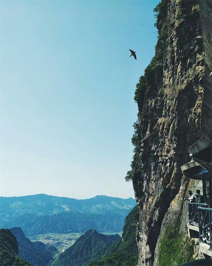 前面就是有“世界第一梯”之称的百龙电梯了,高达362米,运行速度超级快,还没反应过来就到顶了,电梯的底部是透明的玻璃,你可以欣赏四周的美景,群山峻岭就在脚下,简直不要太刺激了。