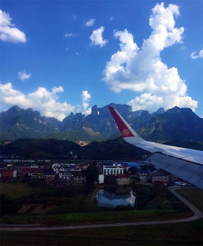 飞机接近着陆时,远远便能望见天门洞了。我们买的是特价机票,凌晨6点左右到达机场,我们的自由行导游小熊已经在那接站了,不得不说他家的服务真的很贴心。选择自由行的好处是我们既可以像跟团游一样享受各种便利和优惠,又能和自己出游一样自由安排时间,实在是再棒不过了。
