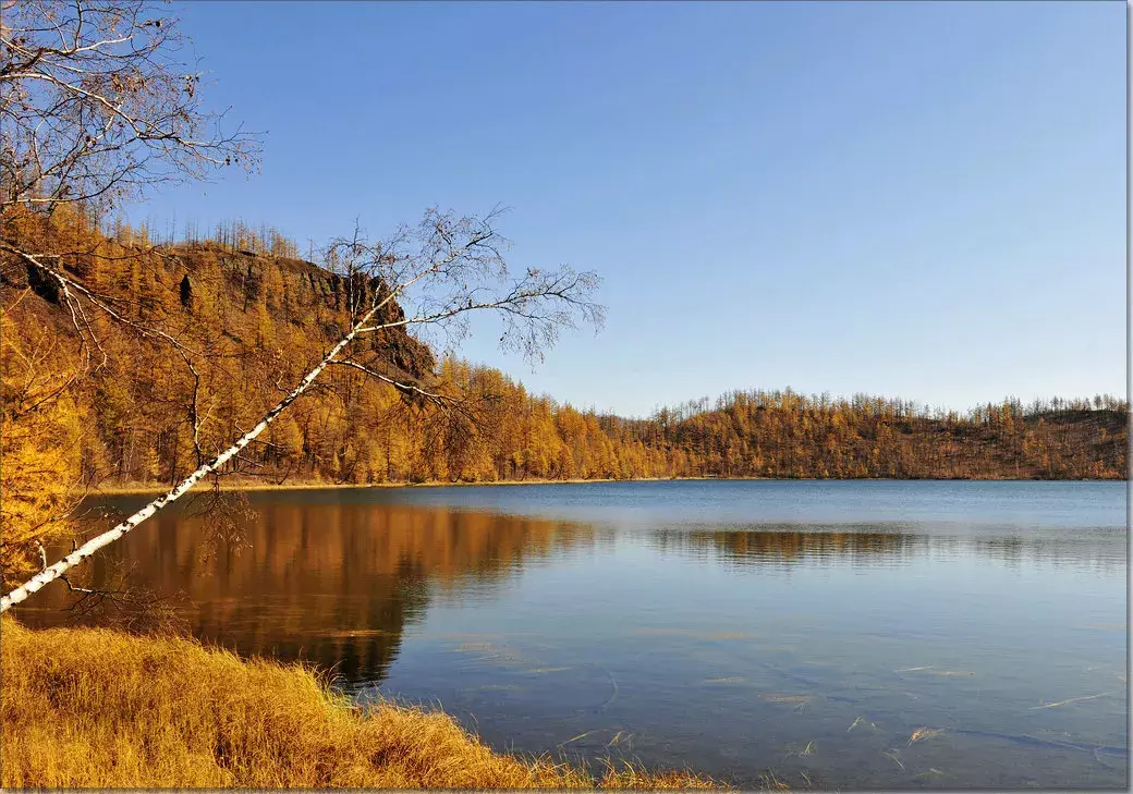 阿尔山的秋天来的很早,山林早就慢慢褪去青翠,换上的是绿中带黄,黄中夹杂着红的奇妙景色,就像上帝打翻了颜料盘,五彩斑斓。