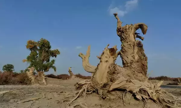 如果将全国各地的胡杨作比较,无论胡杨之美还是胡杨之刚毅都由新疆获冠。新疆胡杨号称"生而一千年不死,死而一千年不倒,倒而一千年不腐"。