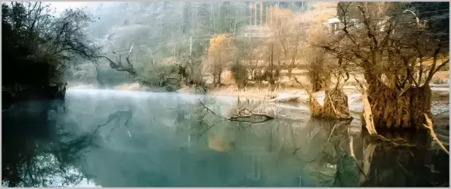 董家河很有灵秀之气,三三两两深植于水中的老树,临水梳妆,非常具有艺术感。水中有树,树中有水的景观,这便是董家河的独特魅力了。