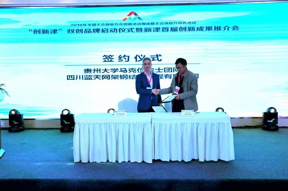 ▲ 贵州大学马克俭院士团队与四川蓝天网架钢结构工程有限公司签约