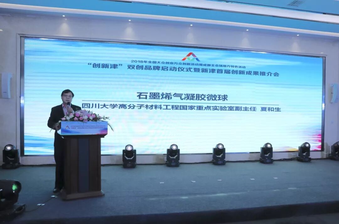 近年来,新津加强校地融合、增强协同创新,大力推动高校科技成果在新津转化落地,与四川大学的高分子材料工程国家重点实验室,共同建立了先进高分子材料中试孵化基地,研究成果比较显著。当天展示的创新成果中,就有来自该基地的石墨烯气凝胶微球、高效除甲醛产品等项目。此外,以成都迈科高分子材料股份有限公司为代表的新津企业就近年来与高校院所协同创新的成果及合作经验、体会等进行了分享。