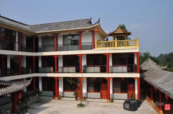 蟠龙山庄是三合院民居,由三幢房子组成一个“凹”字形平面,是一个三层楼,钢筋混凝土的小楼房;因为地势不可能更改,山庄朝向与众不同,座南朝北,让我们看房子和思维习惯都受到极大的挑战!