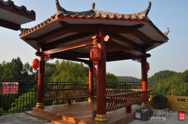 长廊东面是“观景亭”,欣赏风景的最好地点,有对联:“薄雾山村堪称人间仙境,天然氧吧犹如世外桃源”