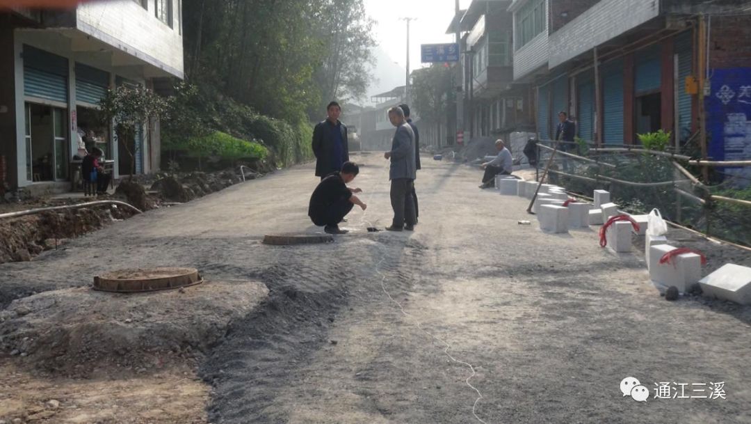据了解,三溪镇场镇改造提升工程,全长1.3公里,起于场镇入口(道班)处,止于粮站,施工内容包括路面黑化,雨水污水管道深埋,化粪池修建,人行道铺设,弱电管网铺设。