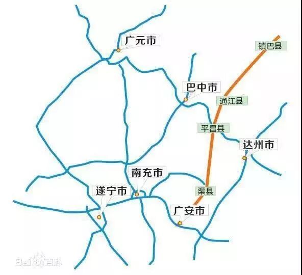 ▷ 该路线将有效连接巴中、达州(途径达川和渠县)、广安三城市,提高川东北地区的高速公路路网密度,衔接国家高速公路网,加快构建起川东北城市群间的畅通安全高效的现代综合交通运输体系,并推进这一地区的城市群发展。