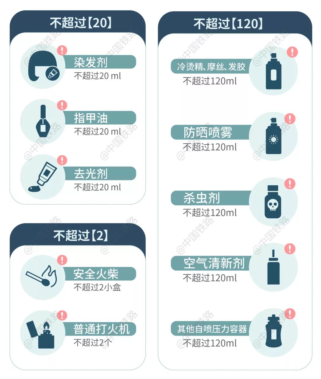 每名旅客最多可携带50条香烟进站乘车,超过数量的须出示相关部门出具的携带证明,符合要求后才可以进站乘车。