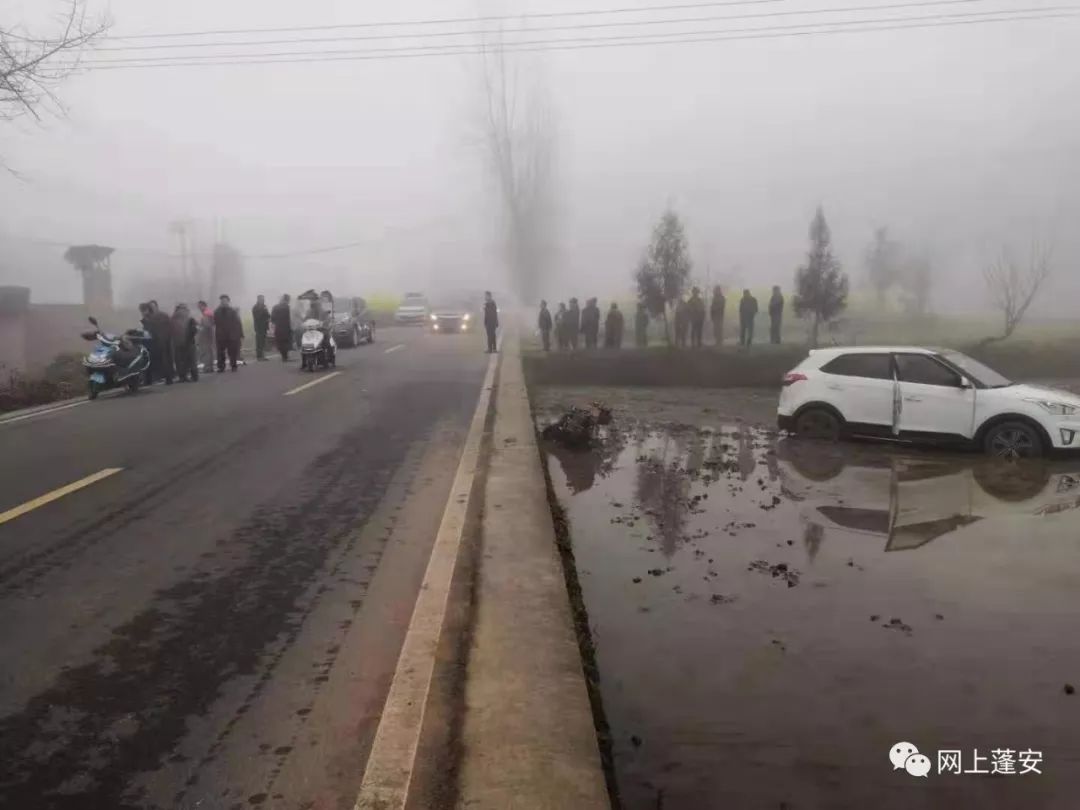 报料人说,今天早上蓬安境内到处都是雾罩,这个地方估计是雾罩太大了,估计路上的能见度不太高,导致了这起车祸事故的发生。