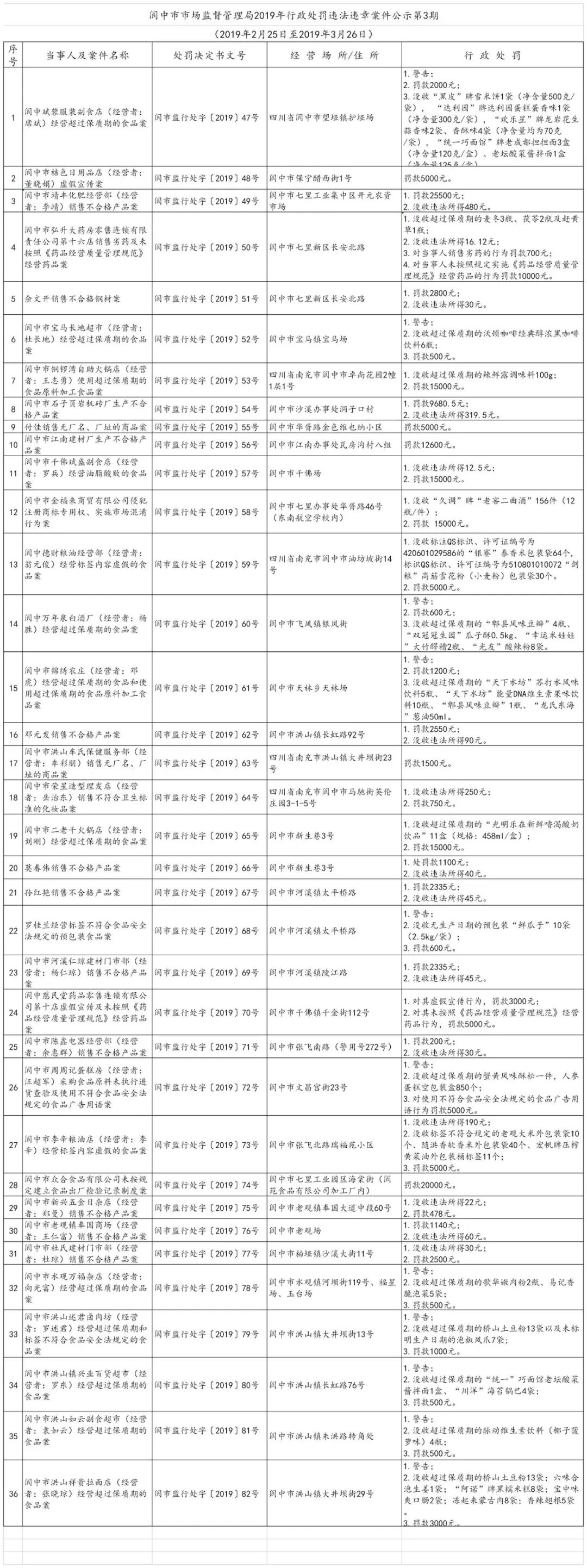阆中市市场监督管理局2019年行政处罚违法违章案件公示第3期 |