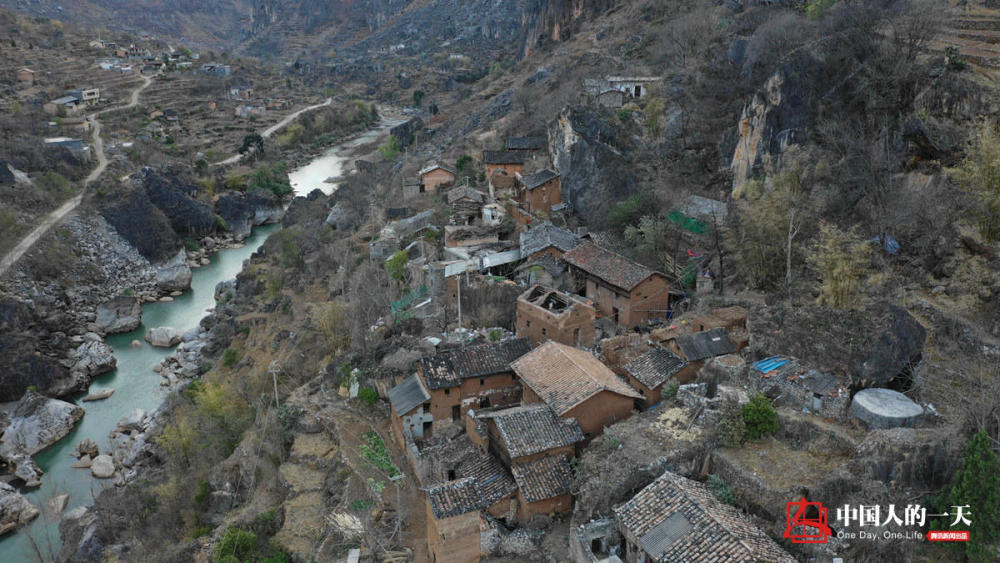 大石头组分为上下两个寨,房屋散落在牛栏江边的陡峭山地上,近两年随着精准扶贫推进,不少村民进行了易地安置,原来70多户人的村庄如今只剩下29户,当中有12个小学生,7个中学生。