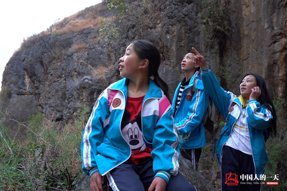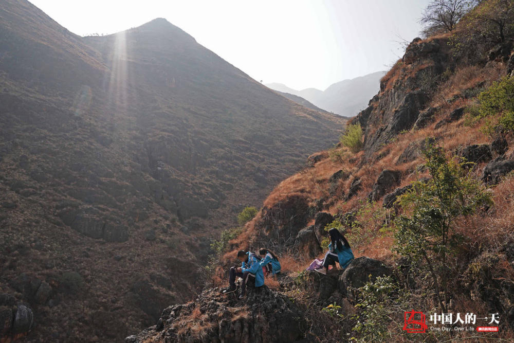 “羚羊路”沿途经过悬崖、陡坡、碎石和塌方路段,累计上升高度为1100米左右,脚程快的需要攀爬2个半小时左右。虽说这些生孩子生在大山、长在大山,爬山能力已经超过外人许多,但高负荷的体力消耗,他们途中还是得休息好几次。