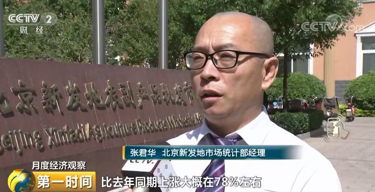 北京新发地市场统计部经理张君华:新发地市场目前的水果价格每公斤平均在六块一毛五左右,比去年同期上涨了大概在78%左右,上涨的主要品种包括猕猴桃、梨、苹果还有柑橘类。