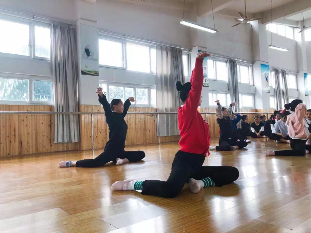 对着舞蹈室的镜子一个动作一个动作地进行练习
